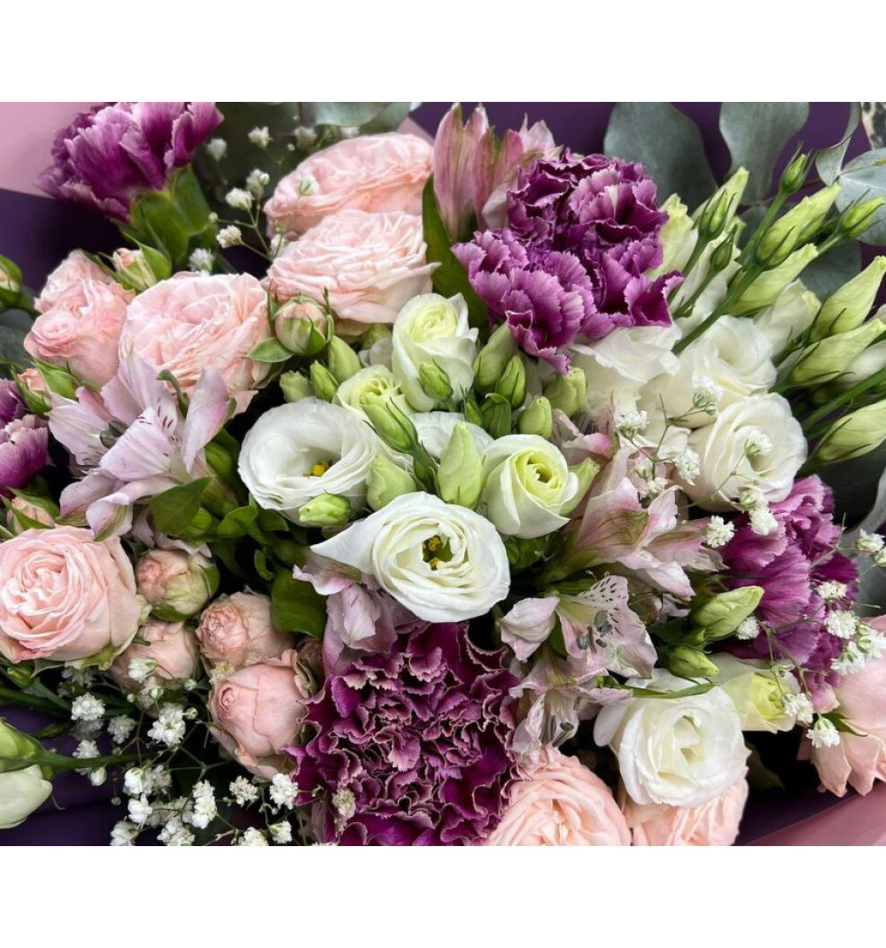 Букет с розами и диантусами — это удивительное сочетание прекрасных цветов. Розы привносят в букет свою изысканность и нежность многослойными лепестками, а диантусы добавляют ярких красок и приятный аромат. Этот уникальный букет создаст атмосферу романтики и красоты, станет прекрасным подарком для выражения глубоких чувств и создания особых моментов с вашими близкими. Букет с розами и диантусами — это нежное и эмоциональное выражение чувств, чтобы сделать день получателя особенным и запоминающимся.