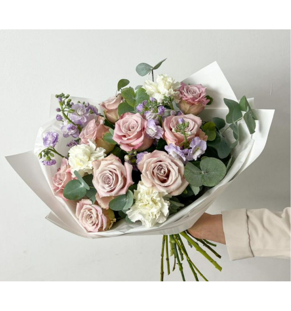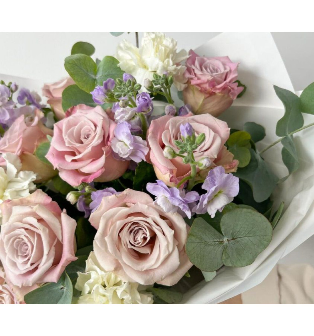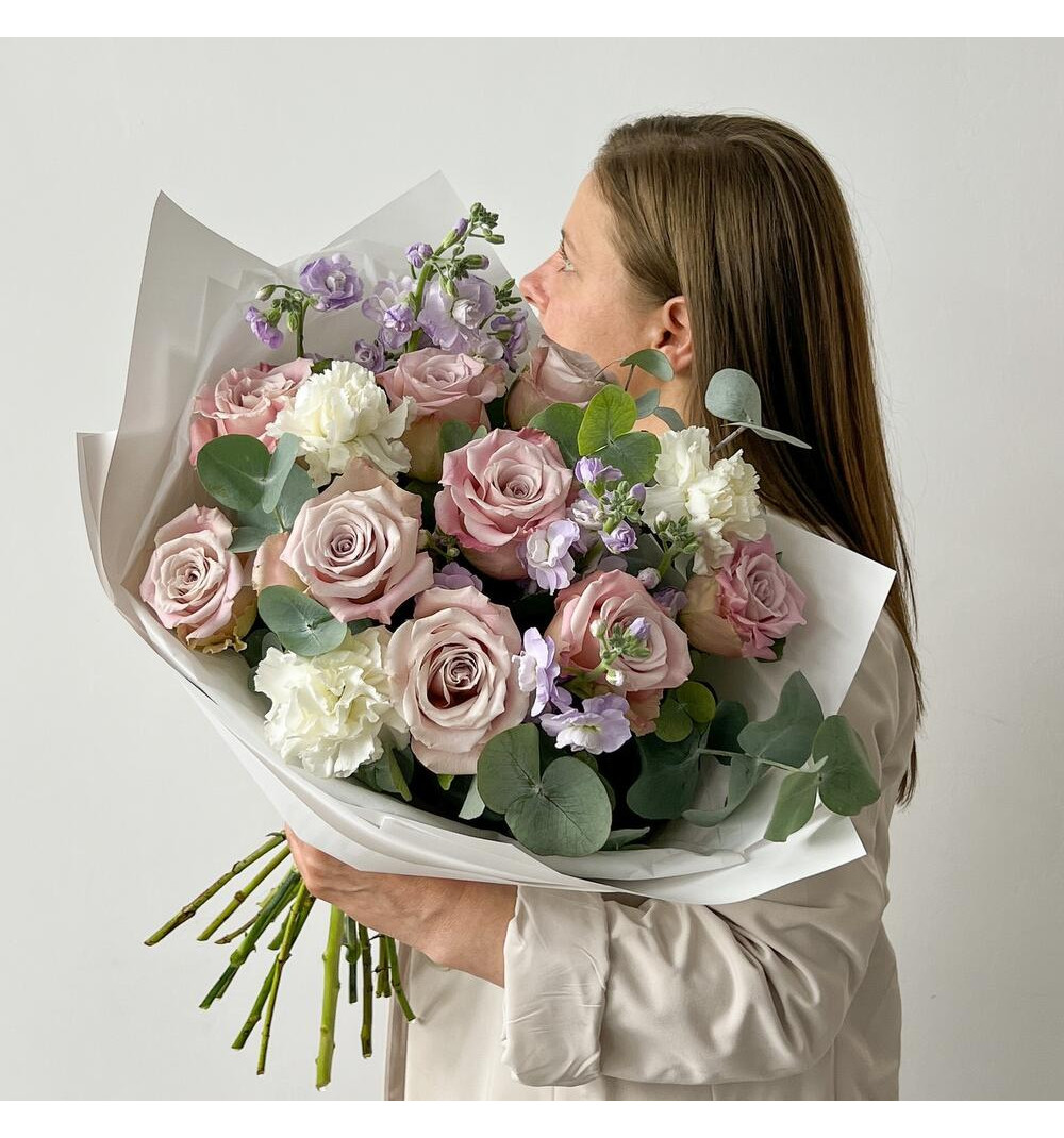 Купить Букет в нежной гамме с розами и маттиолой в Кокшетау за 30 000 ₸ | интернет-магазин «Guls»
